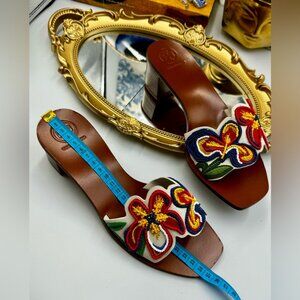 🆕 TORY BURCH 🧿 NWOT Bianca Floral Bead Embellished Slide Sandal - Ivory Multi