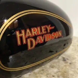 Vintage 2002 Harley Davidson High Shine Black Gold Road Hog Ceramic Piggy Bank