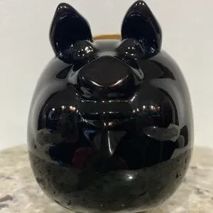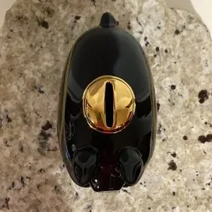 Vintage 2002 Harley Davidson High Shine Black and Gold Road Hog Ceramic Piggy Bank. Circa: 2002