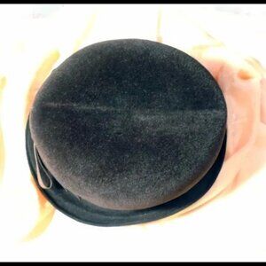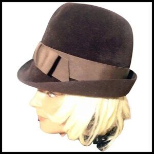Unusual style, like a Homburg but the front of brim is turned down. Some might call it a ''Trilby'' but this has a very high crown. Not exactly a fedora, a most unique style, one that can't be categorized! Mod vibe here from the mid 60s. The style is similar to women's U.S. military hats also as well as British ''Bobbys''. Brown fur felt. Looks barely worn. 22'' around inside of sweatband