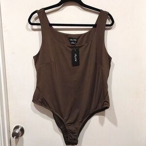 NWT City Chic Women's Khaki Green Body Suit Essential. It is a blend of polyester and elastane. Great for layering. Size S/16