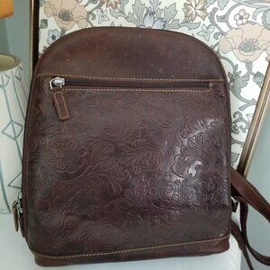 Jack Georges Brown Floral Embossed Leather Backpack Tote Satchel Bag Purse