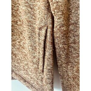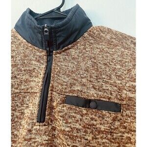 This Eddie Bauer sweater is a versatile piece that's perfect for any occasion. With a high neck and 1/4 zip, it's both stylish and functional. The fleece fabric is perfect for keeping you warm, and the rust heather color adds a touch of modern style. Accented with a button and a fish graphic print, this sweater is perfect for men who love to golf or hike. The tight-knit pattern and classic fit make it a great choice for travel, workwear, or casual parties. This sweater is machine washable and is made of polyester material.