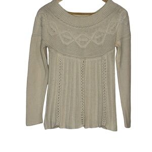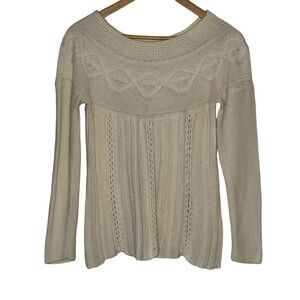 Sigrid Olsen Women's Cream Off White Boat Neck Cotton Sweater Size Medium