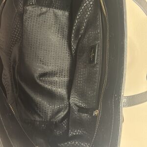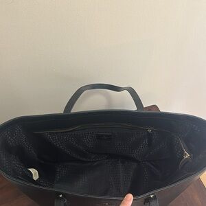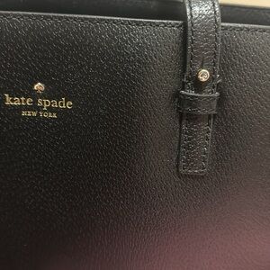 Kate Spade New York Zippered Tote Bag Leather Handbag Purse in Black Pebbled Leather