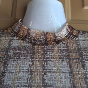 Willow + Root Buckle brown Plaid semi sheer mesh Mock neck top retro 70s Fall