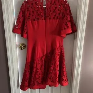 Fun and flirty mixed media red dress. The kind you want to twirl in. Excellent used condition