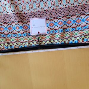 10" slit on left side. Elastic on inside of waist band. 27.5" length. 95% Polyester 5% Spandex.