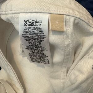 Stitched raw hem won’t fray. Silver tone metal buttons Font cargo pockets and back patch pockets