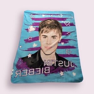 2011 Justin Bieber Bravado Soft Large Throw Blanket Purple Blue Hearts & Stars