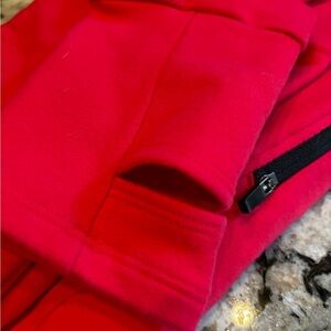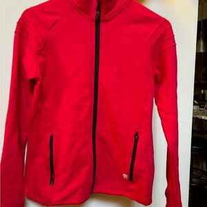 Red Zip front jacket with thumb holes in sleeves and 2 zippered pockets in front and 1 in back!