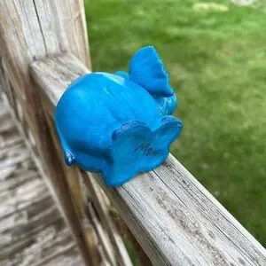 Upcycled a Precious Moments elephant and gave it a repaint. Last picture is “before”.