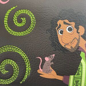Get ready for a stylish and functional addition to your Disney collection with this Loungefly hip bag. Featuring the colorful and vibrant Encanto theme, this fanny pack is perfect for holding your essentials while you explore the parks or go about your day. The dark brown bag glows in the dark, adding an extra touch of fun and magic to your outfit.