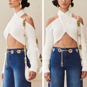 NEW Cult Gaia Elyse Knit Cropped Top - Off White