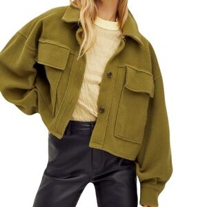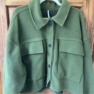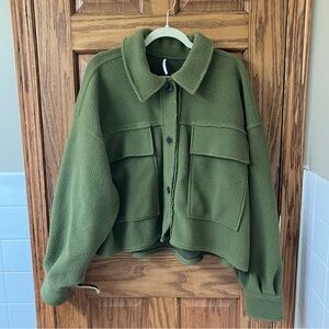 Free People Olive Green Button Up Fleece James Jacket Size L
