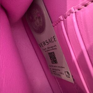 Utilizing archival codes like butterflies and ladybugs, the“nastro Gianni”stitch, and Medusa ’95 hardware, this capsule features silk twill, textured wools, twisted and knotted jersey, and three-dimensional jacquards to create generous proportions. The array of ready-to-wear and accessories emphasizes fluid lightness with moments reminiscent of Versace’s glamourous Supermodel era. Crafted of crystal-embellished satin, this mini shoulder bag from Versace is topped with silvertone V hardware.