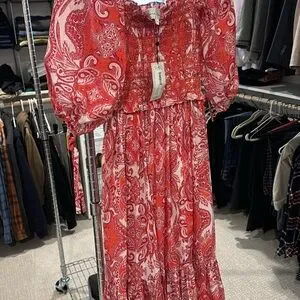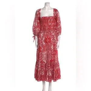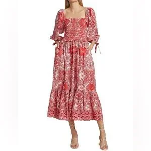 Cara Cara Jazzy Dress. Puff Sleeves. Smocked Bodice. Inkwash Hibiscus. Size S.