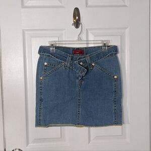 Retro Levi's Type 1 Y2K Belted Denim Light Wash Mini Pencil Skirt Size Small