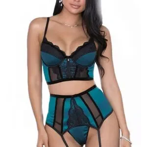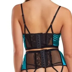 iCollection Lux Satin and Lace lingerie Y2K corset - teal/black