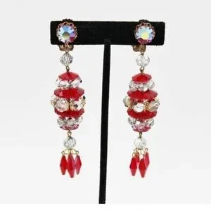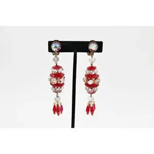 Vintage Red AB Crystal Rhinestone Statement Dangle Earrings