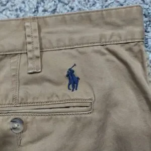 Elevate your casual wardrobe with these Polo Ralph Lauren Khaki Shorts. The relaxed fit and flat front design make them comfortable and easy to wear for any occasion, whether it's a day out in the city or a casual dinner. The shorts feature a zip closure and slash pockets for added convenience. Made with breathable and easy-care cotton fabric, these shorts are machine washable and perfect for any season. The solid beige color and American preppy theme add a touch of sophistication to your outfit. Available in size 38, these shorts are a must-have for any fashion-conscious man.