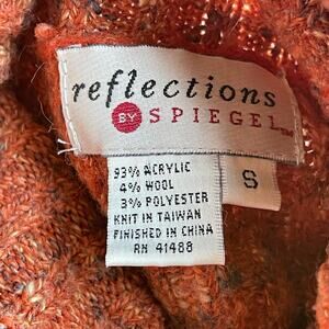 Vintage 90s Y2K ribbed orange turtleneck sweater boucle Spiegel marled.  Slouchy, relaxed, baggy, oversized fit.  Orange with cream and gray flecks. Acrylic, wool, polyester blend. Gently used vintage condition. Check out the video of this gem in its current condition!