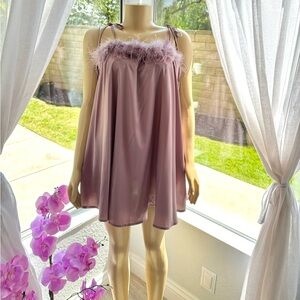 Nasty Gal Feather Trim Satin Nighty Slip Dress Purple Size 8 Shift Dress