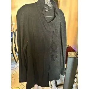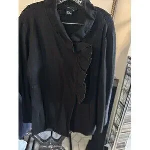 This gorgeous Sandro sportswear jacket features a ruffled front closure with snaps. Stand up collar, two front slit pockets, and warm! It is beautiful worn open or closed.
