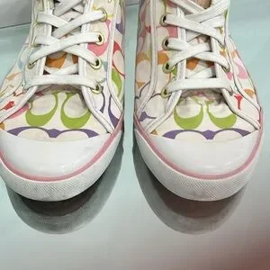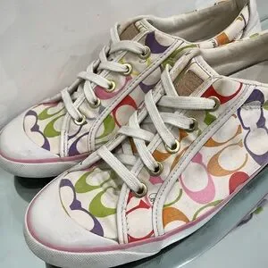 Coach Barrett Leatherware Canvas Lace up Sneakers White Multicoloured 9.5 US