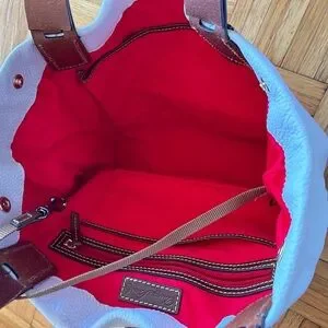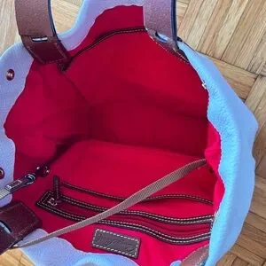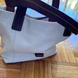Beautiful white pebble leather bag with tan trimmings