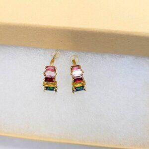 Golden Rainbow Rhinestone Gem Multicolor CZ Gold Plated Small Earrings