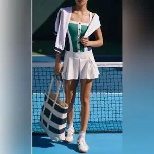 NWT Anthropologie Daily Practice blue, green and cream sleeveless pleated mini dress. Great for tennis, pickleball or anything!