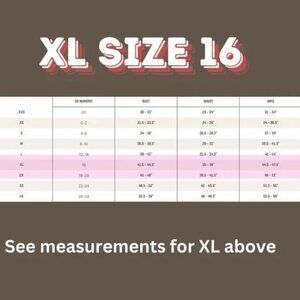 Size XL = 16, however may also fit 14 - see photo with XL measurements