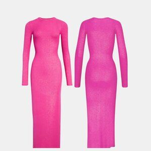 SKIMS Soft Lounge Long Sleeve SHIMMER FOIL Maxi Dress - Hot Pink - NWT - X