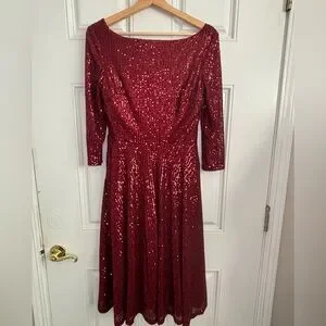NWOT Unique Vintage Burgundy Sequin Sparkle Dress size medium 6/8