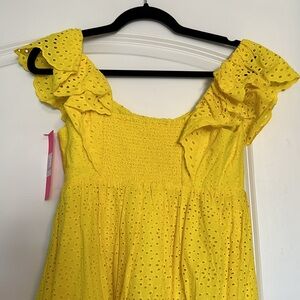 Lilly Pulitzer Asteria Eyelet Babydoll Dress - Size 0. New with tags. Smocked back. Color is Resort Yellow Daisy Dreams Eyelet. Fit and flare. True to size.