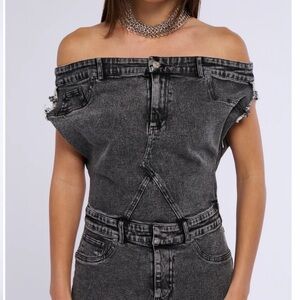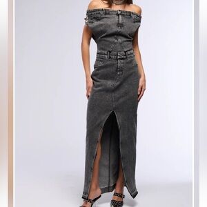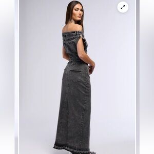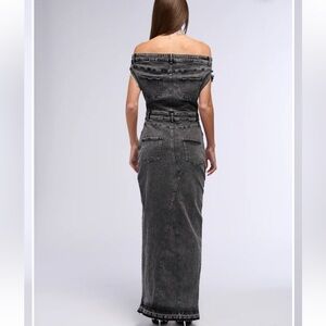 3)DERRIA OFF THE SHOULDER DENIM MAXI DRESS EUC MSRP$90 LG wore this to poshfest