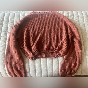 Moon and Madison Sweater, Bubble Sleeve, Cropped, Tan Brown, Small