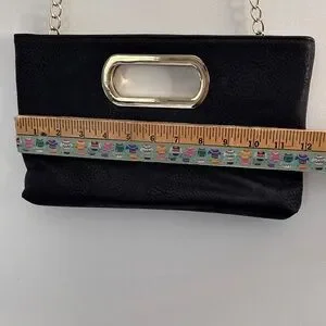 Black and gold Charming Charlies clutch. It has a removable gold chain. Snap closure, interior zip pocket. See photos, there are some slight scuff marks. If you have any questions, please ask :) Thank you!