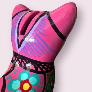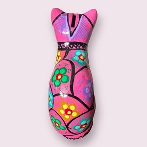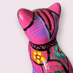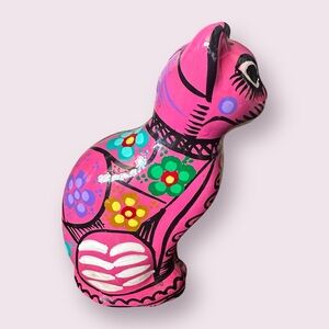 Vintage Hand Painted Ceramic Mexican Folk Art Talavera Cat Figurine Piggy Bank