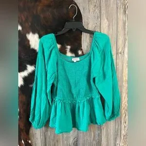Andree by Unit square neck smocked size medium Kelly green blouse