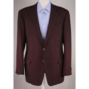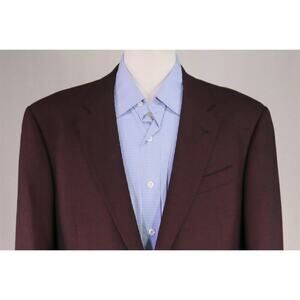 Armani Collezioni Current Burgundy/Black Woven Wool 2-Btn Slim Blazer Jacket 44R