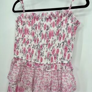 NWT Dalia Macphee Pink Floral Tiered Maxi Dress Smocked Tiered Bodice Wedding L