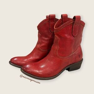 RARE Frye Carson Pull On Red Leather Southern/Western Low Heel Boho Cowgirl Boot