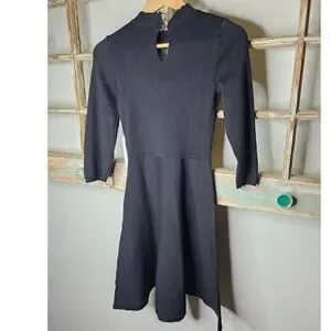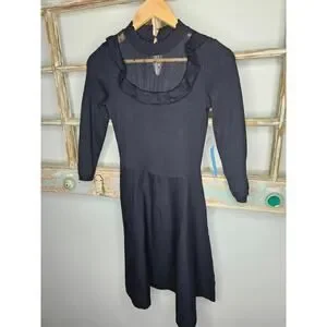 NWT Black Sweater dress by Draper James ladies size XS. This Dress has a ruffle bib neckline with polka dot sheer lace. This dress has two gold buttons that fasten in back of neck. It measures 16" pit to pit, 13.5" waist, 38" in length and 3/4 sleeves. This dress is versatile very smart looking.