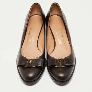 Salvatore Ferragamo Brown Leather Vara Bow Pumps
