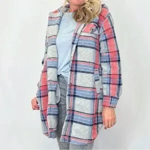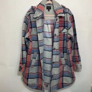 Cozy up with this new jacket from Tribal. Featuring a removable hood, plaid style, this jacket will keep you warm this fall!
