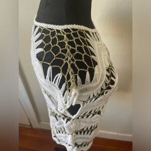 Venus white crotched/gold thread chain look swim cover up, size med, like new