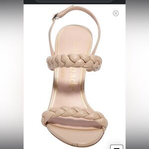 BRAND NEW. Never worn. Comes with box and bag. Size 7. Dual braided straps texture a versatile leather sandal set on a slim heel and finished with an adjustable slingback strap.