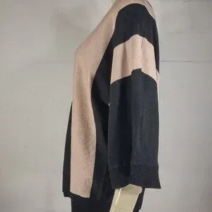 Magaschoni black tan beige blend crew neck pullover sweater ladies XL X-Large